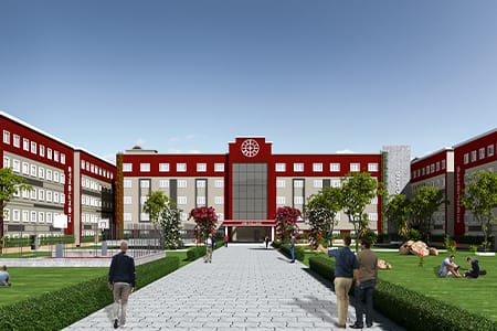 An integrated Campus with Academic Block (Classrooms), Hostel, Dining and Sports arenas within a secured compound.